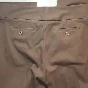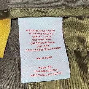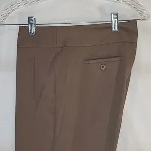 Pre-owned Women's Ruby Rd. Tan Pants. Size: 10. Material: 79% Rayon, 18% Nylon and 3% Spandex. The pants are in excellent shape. Great for business casual and casual settings. No pockets and/or belt loops.