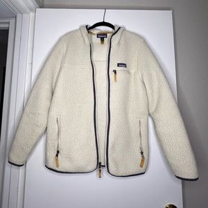 Lightly used medium Patagonia fleece with hood. Fits like a large.