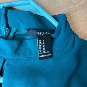 Size M. I’m 5’7 ” and 140lbs - depending in chest size it may be a little tight. Cleavage slit, meshy sleeves and cute high waist band. The zipper can be stubborn in the back at the waist but i just don’t unzip it all the way! No stains or tears, pet free, smoke free home.