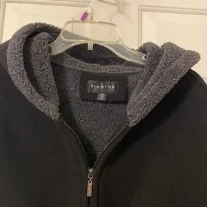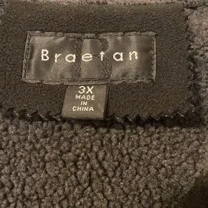 Braetan fleece women’s coat with hood, black with grey faux Sherpa lining, cuffs which can be rolled up or down, zippered pockets. Hood is non detachable. Size 3X