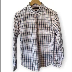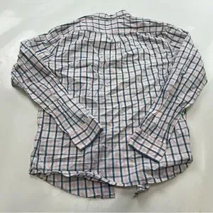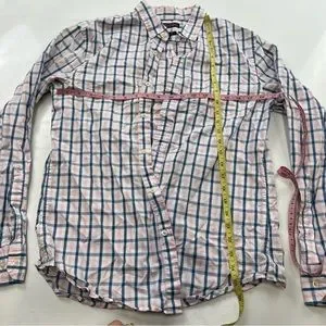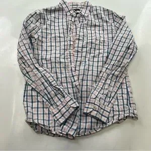 banana republic men’s pink blue flannel button down shirt M Cotton L36-8