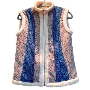 Kimchi & Blue Corduroy Embroidered Patchwork Floral Pattern Sherpa Vest Sz S