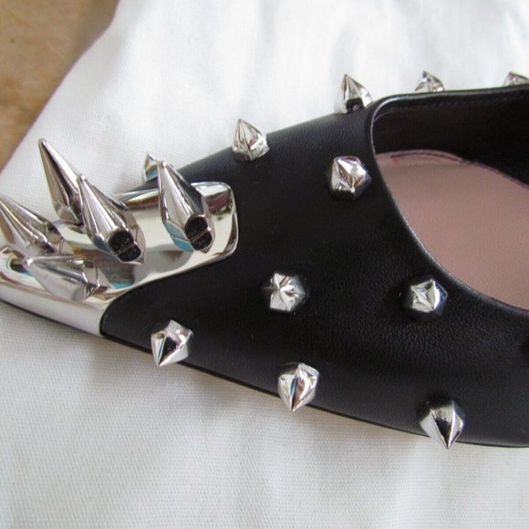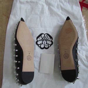 NEW with dust bag ALEXANDER McQUEEN Black Leather Spiked Silver Metal Flat Ballerina Shoes Size EU 36, US/Can 5,5, UK 3, Japan 22,5.