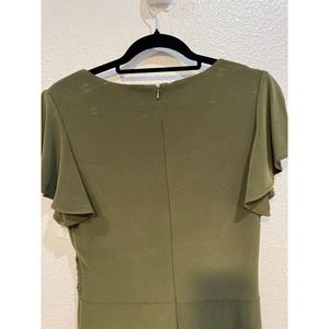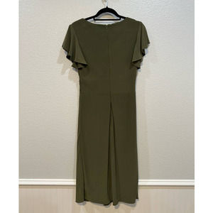 IEENA for MAC DUGGAL $378 Flounce Sleeve Midi Dress Olive Size 4