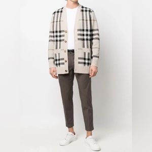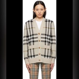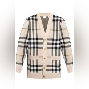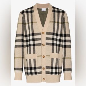 Burberry Signature Check Jacquard Cardigan Wool Cashmere in Beige | size L