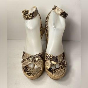 Jimmy Choo snake embossed wedge espadrille sandals ankle strap 37