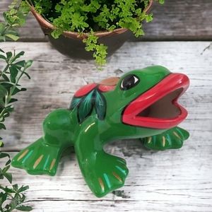 Floral Ceramic Frog Figurine 4 x 8" Open Mouth Curio Home Decor Collect…