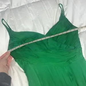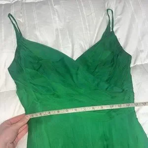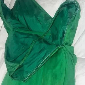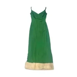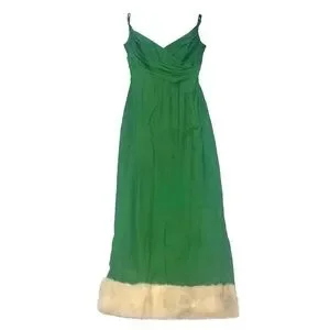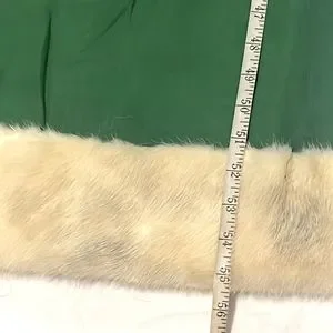 Vintage 1950’s Green Genuine Cream Mink Fur Trim Silk Evening Gown