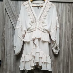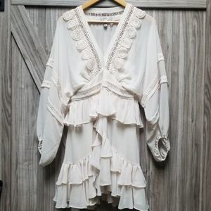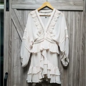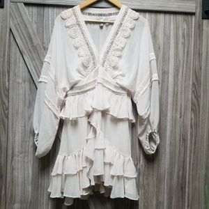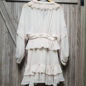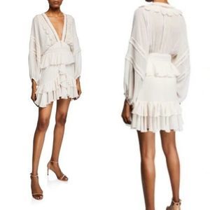 Beautiful NWOT Shona Joy Rafaella Plunge-Neck Long-Sleeve Frill Mini Dress