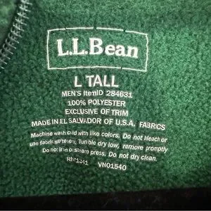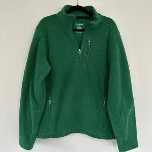 LL Bean Polartec Full Zip Trail Fleece Full Zip Green Size L w/ Pockets #284630