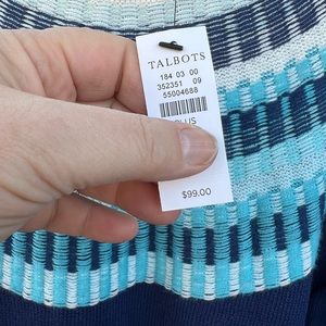 NWT Talbots Gorgeous Blues Green Cream Woven Fair Isle Long Sleeve Sweater. 1X Bust 47”, 2X Bust 51”, 3X Bust 55”, Length 29”. Originally $99. Enjoy!