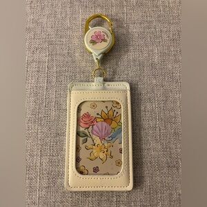Carry your essentials around like royalty with this Disney lanyard! Featuring a group portrait of Rapunzel, Cinderella, Ariel, Tiana, and Belle on the front, the back includes a clear ID sleeve. With a flower on the retractable badge reel, this accessory is perfect for your next Disney Parks visit.