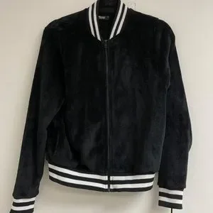 Michael Lauren Zip Stripe Velvet Jacket Medium Black