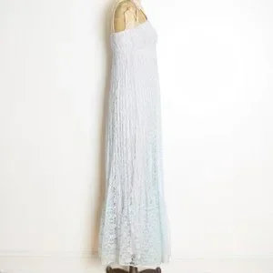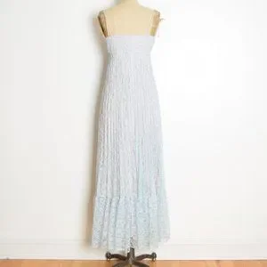 vintage 70s sun dress blue lace empire waist long maxi prom party hippie boho XS