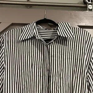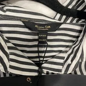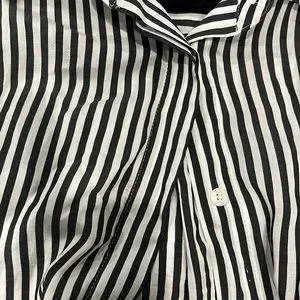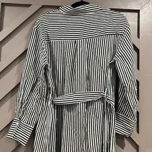 Massimo Dutti long sleeve belted button down black &white 3/4 length dress XS/S