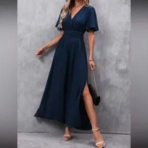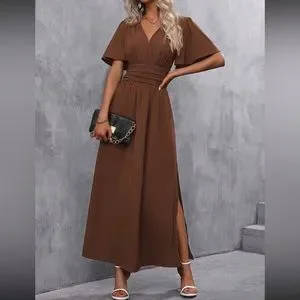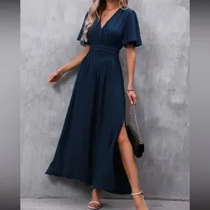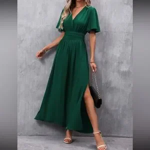Boho butterfly sleeve slit thigh maxi dress