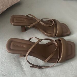 Add an alluring touch to your step with these heeled sandals, crafted with leather, and featuring a buckle fastening and an open-toe design.