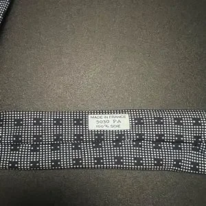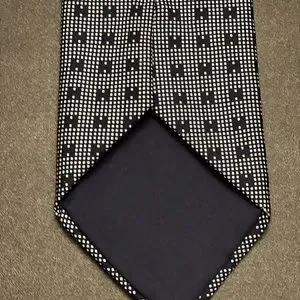 • Has an unnoticeable mar/stain that is camouflaged by the color of the tie.