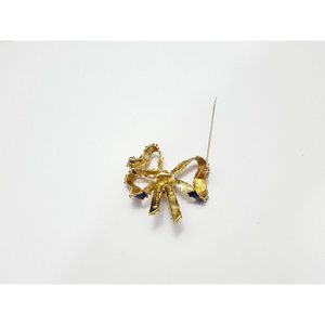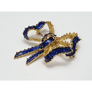 Yellow Gold Blue Enamel Bow Brooch Pin