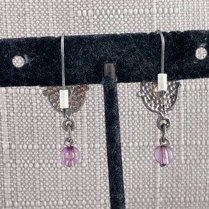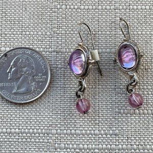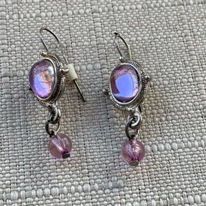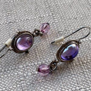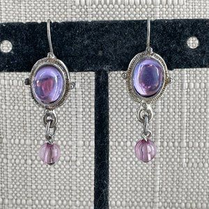 Vintage Earring Silver Tone Purple Faux Stone Drop Down Earring Jewelry