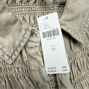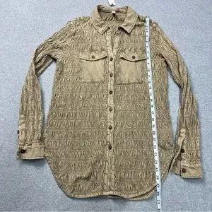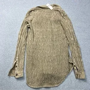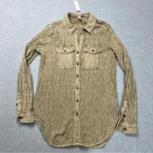 Anthropologie Pilcro Top Womens XS Brown Button Down Smocked Shacket NWT