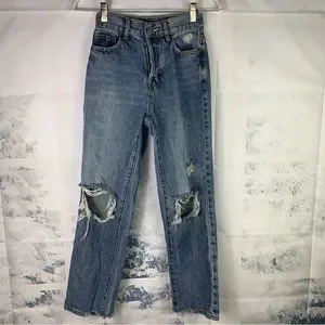 Pacsun 100% Cotton High Rise Straight Distressed Jeans