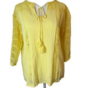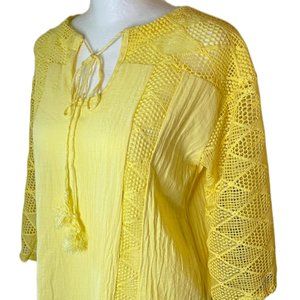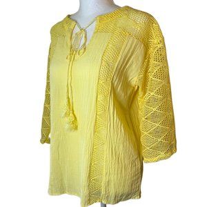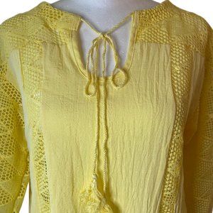 Yellow Lightweight 3/4 Sleeve Shirt with Lace Details & Tassels Size Medium