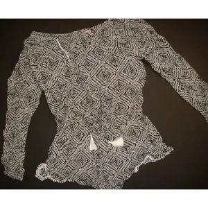 NWT Victoria's Secret S COVER UP ROMPER long sleeve black white pom pom