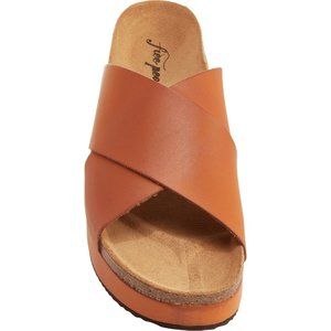 Elevate your look with Free People's Sidelines Flatform sandals, crafted with wide, faux leather straps, contoured cork cushioned footbed and flexible outsole.
