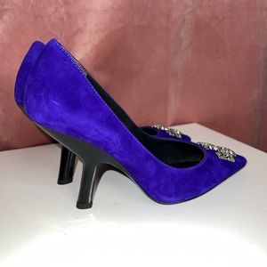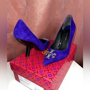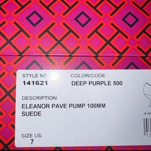 $428 Tory Burch ELEANOR PAVÉ PUMP Shoes Heel Suede Deep Purple US 7M