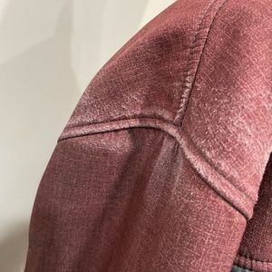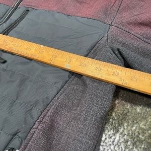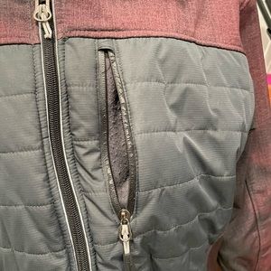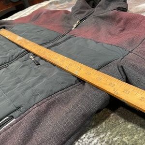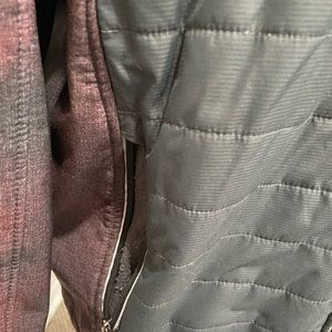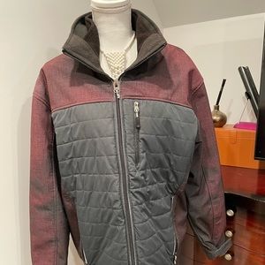 Cool champion jacket.. the inside comes off can wear separately.. some wear on the shoulder.. not noticeable.. still has lots of life.. black gray burgundy