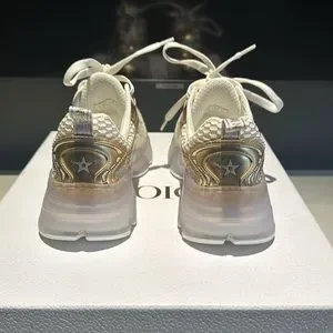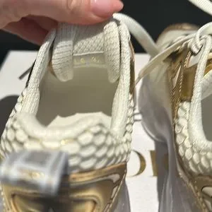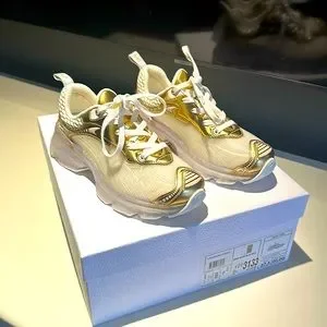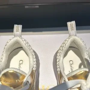 WORN ONCE and in perfect condition Dior vibe sneakers in gold. Translucent exterior covering to mesh sneakers. Size 7 1/2. Includes box and dust bags. Retail $1190!