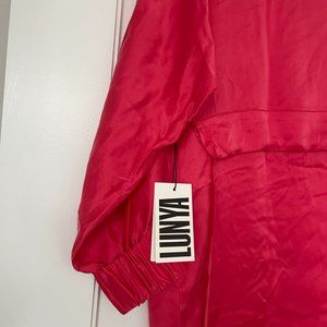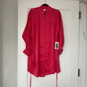 Lunya Washable Silk Robe Energized Pink Medium Self Tie Removable Belt Pockets