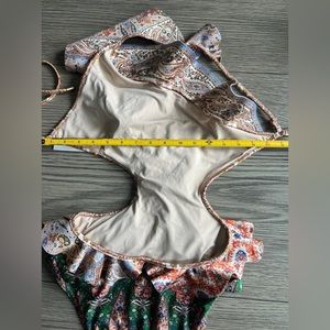 Staying true to the label’s bohemian essence, Zimmermann’s Devi swimsuit is printed with a vibrant paisley motif. Made from Italian Lycra®, this one-shoulder design features flattering cutouts at the waist and intricate all-over ruffle details.