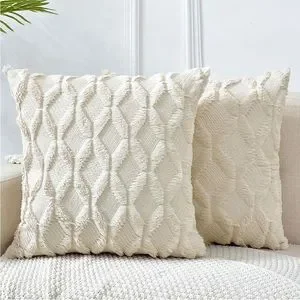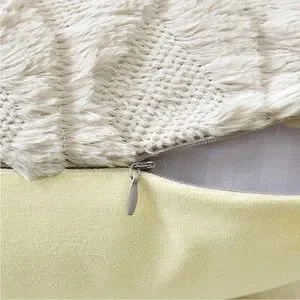 Light Cream Farmhouse Pillow Cover Furry Faux Luxury Soft Warm Pillow Case Set