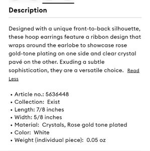 Designed with a unique front-to-back silhouette, these hoop earrings feature a ribbon design that wraps around the earlobe to showcase rose gold-tone plating on one side and clear crystal pavé on the other. Exuding a subtle sophistication, they are a versatile choice.
