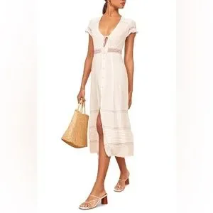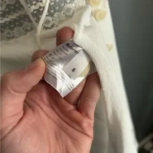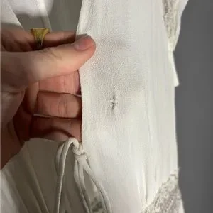 This dress is absolutely stunning! Has a tiny blemish on the top layer as shown but I sewed it closed. Very much gives cottagecore vibes, womens size 8.
