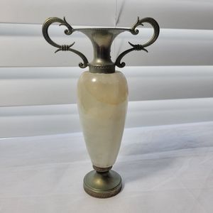 VINTAGE DECORATIVE ONIX AND BRASS VASE SMALL