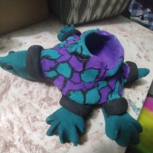 Hand crafted from natural air dry clay. Dried in over 400 degrees of heat. And hand painted with my personal favorite colors. All done by your's truly. This is a one of a kind you will never see another like it .