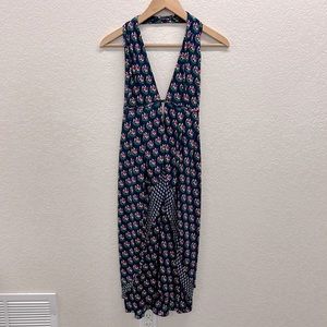 DVF Leyland Zen Floral Halter Dress in Midnight S Silk