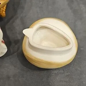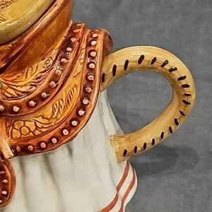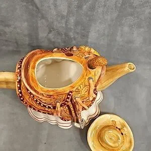 I've had this unusual tea pot for years, probably 20+. It's only been used for display, and to be honest, I don't know if you can actually use it. It appears to be ceramic. It measures approximately 7 1/4" tall by 10 1/2" wide. It's in very good condition but there are a few very small chips - see pics.