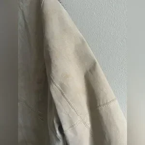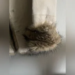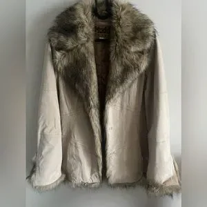 What a blast from the past! This is a beautiful vintage Mudd Jeans jacket with fur! This is a great jacket to wear out and about with jeans or even a skirt! It is in beautiful condition! The cuff of the sleeves are able to fold up (pictured) to show the fur. Minor stains but can be buffed out or cleaned by a professional. Stains are pictured. No other flaws. Size looks like it says 1. Please look at the measurements before purchasing