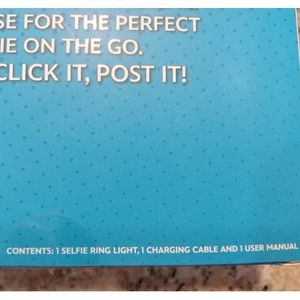 Contents: 1 selfie ring light, 1 charging cable, 1 user manual