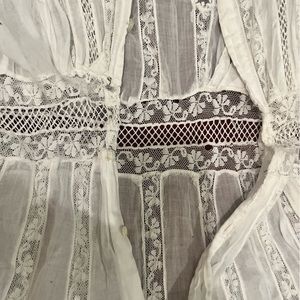 ANTIQUE 1900's ROMANTIC GOTHIC EDWARDIAN COTTON TEA DRESS WITH LACE DETAIL. ABSOLUTELY STUNNING! BRIGHT WHITE 100% COTTON, GOSSAMER! EXQUISITE!