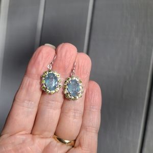 This is a beautiful set of solid 925 earrings with stunning crisp baby blue 6karat each natural kyanite cushion cut center stone surrounded by Peridot gems. These are dainty, but have an elegant feel and will grab attention from all who see them! Please ask questions and make an offer. I can't say yes if you don't ask!