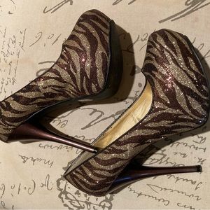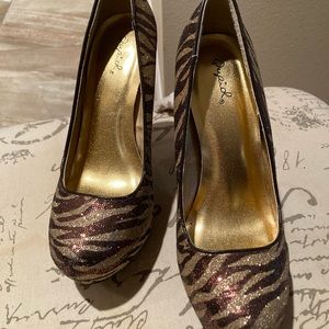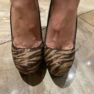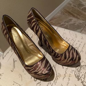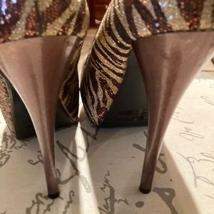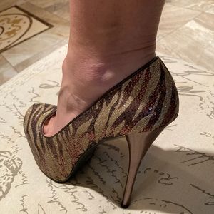 Qupid sparkly gold, and bronze stilettos