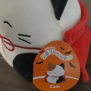 Squishmallows Halloween Squad 8" Cam the Cat Vampire with fangs and red cape NWT