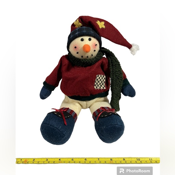 This is a previously loved weighted, plush winter Christmas snowman. He’s the perfect addition to your home decor! The head is made of a foam ball covered in felt. Body is soft plush as are his legs & arms. Weighted bottom, so he sits up on his own. Non-smoking home. Willing to bundle! Make me an offer!