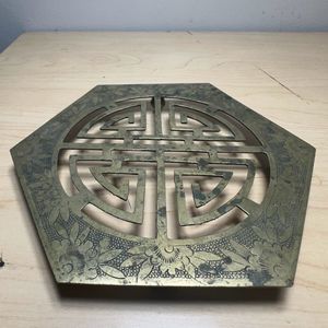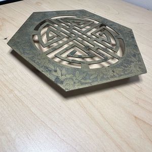Vintage Oriental Brass Trivet, Mid Century Trivet