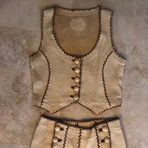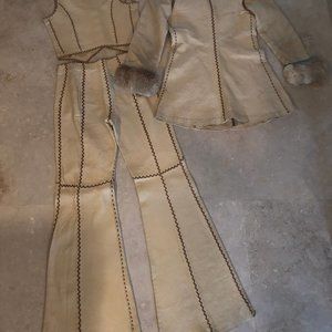 North Beach Leather Jacket, Vest, Pants 3 Piece Matching Set 70s Vintage Hippie